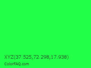XYZ 37.525,72.298,17.938 Color is a normal green color and the nearest color is Malachite #0bda51. Hex code #21ff47 and RGB value is rgb(33,255,71). In RGB color space, this color is composed of 13% red, 100% green, 28% blue, In CMYK color space, this color is composed of 87% cyan, 0% magenta, 72% yellow , 0% black , In HSL color space, this color has a hue angle of 130° , 100% saturation and 56% lightness.