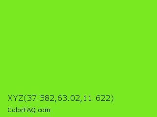 XYZ 37.582,63.02,11.622 Color is a normal green color and the nearest color is Spring Frost #87ff2a. Hex code #79ea21 and RGB value is rgb(121,234,33). In RGB color space, this color is composed of 47% red, 92% green, 13% blue, In CMYK color space, this color is composed of 48% cyan, 0% magenta, 86% yellow , 8% black , In HSL color space, this color has a hue angle of 94° , 83% saturation and 52% lightness.
