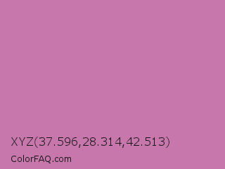 XYZ 37.596,28.314,42.513 Color is a light magenta color and the nearest color is Sky Magenta #cf71af. Hex code #c777ac and RGB value is rgb(199,119,172). In RGB color space, this color is composed of 78% red, 47% green, 67% blue, In CMYK color space, this color is composed of 0% cyan, 40% magenta, 14% yellow , 22% black , In HSL color space, this color has a hue angle of 320° , 42% saturation and 62% lightness.