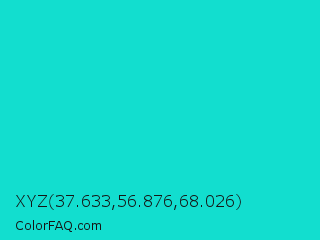 XYZ 37.633,56.876,68.026 Color is a normal cyan color and the nearest color is Bright Turquoise #08e8de. Hex code #12decf and RGB value is rgb(18,222,207). In RGB color space, this color is composed of 7% red, 87% green, 81% blue, In CMYK color space, this color is composed of 92% cyan, 0% magenta, 7% yellow , 13% black , In HSL color space, this color has a hue angle of 176° , 85% saturation and 47% lightness.