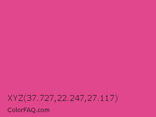 XYZ 37.727,22.247,27.117 Color is a normal rose color and the nearest color is Pink Pantone #d74894. Hex code #e0478c and RGB value is rgb(224,71,140). In RGB color space, this color is composed of 88% red, 28% green, 55% blue, In CMYK color space, this color is composed of 0% cyan, 68% magenta, 38% yellow , 12% black , In HSL color space, this color has a hue angle of 333° , 71% saturation and 58% lightness.