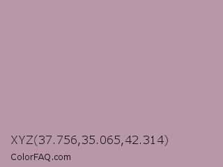 XYZ 37.756,35.065,42.314 Color is a light magenta color and the nearest color is Lilac Luster #ae98aa. Hex code #b797a9 and RGB value is rgb(183,151,169). In RGB color space, this color is composed of 72% red, 59% green, 66% blue, In CMYK color space, this color is composed of 0% cyan, 17% magenta, 8% yellow , 28% black , In HSL color space, this color has a hue angle of 326° , 18% saturation and 65% lightness.