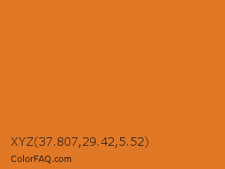 XYZ 37.807,29.42,5.52 Color is a normal orange color and the nearest color is Vivid Tangelo #f07427. Hex code #e07826 and RGB value is rgb(224,120,38). In RGB color space, this color is composed of 88% red, 47% green, 15% blue, In CMYK color space, this color is composed of 0% cyan, 46% magenta, 83% yellow , 12% black , In HSL color space, this color has a hue angle of 26° , 75% saturation and 51% lightness.