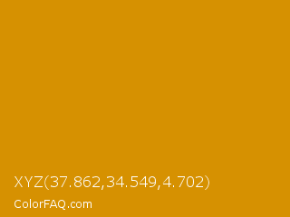 XYZ 37.862,34.549,4.702 Color is a normal orange color and the nearest color is Harvest Gold #da9100. Hex code #d69101 and RGB value is rgb(214,145,1). In RGB color space, this color is composed of 84% red, 57% green, 0% blue, In CMYK color space, this color is composed of 0% cyan, 32% magenta, 100% yellow , 16% black , In HSL color space, this color has a hue angle of 41° , 99% saturation and 42% lightness.