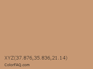 XYZ 37.876,35.836,21.14 Color is a light orange color and the nearest color is Antique Brass #cd9575. Hex code #c79873 and RGB value is rgb(199,152,115). In RGB color space, this color is composed of 78% red, 60% green, 45% blue, In CMYK color space, this color is composed of 0% cyan, 24% magenta, 42% yellow , 22% black , In HSL color space, this color has a hue angle of 26° , 43% saturation and 62% lightness.