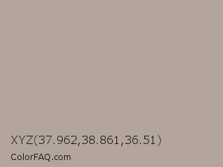 XYZ 37.962,38.861,36.51 Color is a light orange color and the nearest color is Martini #afa09e. Hex code #b3a59b and RGB value is rgb(179,165,155). In RGB color space, this color is composed of 70% red, 65% green, 61% blue, In CMYK color space, this color is composed of 0% cyan, 8% magenta, 13% yellow , 30% black , In HSL color space, this color has a hue angle of 25° , 14% saturation and 65% lightness.