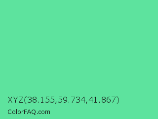XYZ 38.155,59.734,41.867 Color is a light green color and the nearest color is Medium Aquamarine #66ddaa. Hex code #5de39e and RGB value is rgb(93,227,158). In RGB color space, this color is composed of 36% red, 89% green, 62% blue, In CMYK color space, this color is composed of 59% cyan, 0% magenta, 30% yellow , 11% black , In HSL color space, this color has a hue angle of 149° , 71% saturation and 63% lightness.
