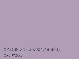 XYZ 38.247,36.904,48.823 Color is a light purple color and the nearest color is Pastel Purple #b39eb5. Hex code #af9eb5 and RGB value is rgb(175,158,181). In RGB color space, this color is composed of 69% red, 62% green, 71% blue, In CMYK color space, this color is composed of 3% cyan, 13% magenta, 0% yellow , 29% black , In HSL color space, this color has a hue angle of 284° , 13% saturation and 66% lightness.