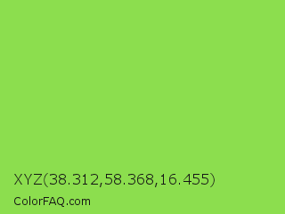 XYZ 38.312,58.368,16.455 Color is a normal green color and the nearest color is Kiwi #8ee53f. Hex code #8cde4e and RGB value is rgb(140,222,78). In RGB color space, this color is composed of 55% red, 87% green, 31% blue, In CMYK color space, this color is composed of 37% cyan, 0% magenta, 65% yellow , 13% black , In HSL color space, this color has a hue angle of 94° , 69% saturation and 59% lightness.