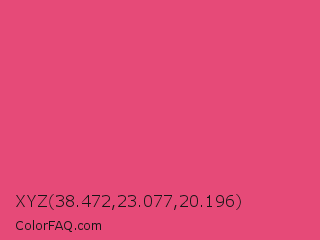 XYZ 38.472,23.077,20.196 Color is a normal rose color and the nearest color is Cranberry #db5079. Hex code #e64a78 and RGB value is rgb(230,74,120). In RGB color space, this color is composed of 90% red, 29% green, 47% blue, In CMYK color space, this color is composed of 0% cyan, 68% magenta, 48% yellow , 10% black , In HSL color space, this color has a hue angle of 342° , 76% saturation and 60% lightness.