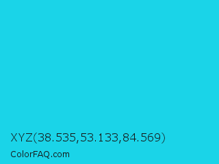 XYZ 38.535,53.133,84.569 Color is a normal cyan color and the nearest color is Bright Turquoise #08e8de. Hex code #1ad4e8 and RGB value is rgb(26,212,232). In RGB color space, this color is composed of 10% red, 83% green, 91% blue, In CMYK color space, this color is composed of 89% cyan, 9% magenta, 0% yellow , 9% black , In HSL color space, this color has a hue angle of 186° , 82% saturation and 51% lightness.