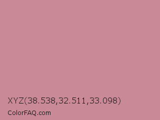 XYZ 38.538,32.511,33.098 Color is a light red color and the nearest color is Puce #cc8899. Hex code #c98996 and RGB value is rgb(201,137,150). In RGB color space, this color is composed of 79% red, 54% green, 59% blue, In CMYK color space, this color is composed of 0% cyan, 32% magenta, 25% yellow , 21% black , In HSL color space, this color has a hue angle of 348° , 37% saturation and 66% lightness.