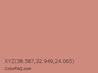 XYZ 38.587,32.949,24.065 Color is a light red color and the nearest color is New York Pink #d7837f. Hex code #cf8a7e and RGB value is rgb(207,138,126). In RGB color space, this color is composed of 81% red, 54% green, 49% blue, In CMYK color space, this color is composed of 0% cyan, 33% magenta, 39% yellow , 19% black , In HSL color space, this color has a hue angle of 9° , 46% saturation and 65% lightness.