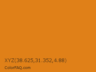 XYZ 38.625,31.352,4.88 Color is a normal orange color and the nearest color is Zest #e5841b. Hex code #e08018 and RGB value is rgb(224,128,24). In RGB color space, this color is composed of 88% red, 50% green, 9% blue, In CMYK color space, this color is composed of 0% cyan, 43% magenta, 89% yellow , 12% black , In HSL color space, this color has a hue angle of 31° , 81% saturation and 49% lightness.