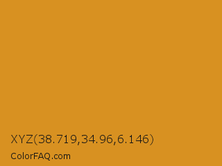 XYZ 38.719,34.96,6.146 Color is a normal orange color and the nearest color is Geebung #d18f1b. Hex code #d89121 and RGB value is rgb(216,145,33). In RGB color space, this color is composed of 85% red, 57% green, 13% blue, In CMYK color space, this color is composed of 0% cyan, 33% magenta, 85% yellow , 15% black , In HSL color space, this color has a hue angle of 37° , 73% saturation and 49% lightness.
