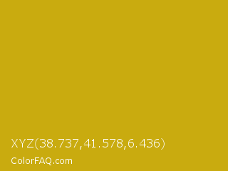 XYZ 38.737,41.578,6.436 Color is a normal yellow color and the nearest color is Buddha Gold #c1a004. Hex code #c9ab0f and RGB value is rgb(201,171,15). In RGB color space, this color is composed of 79% red, 67% green, 6% blue, In CMYK color space, this color is composed of 0% cyan, 15% magenta, 93% yellow , 21% black , In HSL color space, this color has a hue angle of 50° , 86% saturation and 42% lightness.
