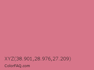 XYZ 38.901,28.976,27.209 Color is a light red color and the nearest color is Charm #d47494. Hex code #d77589 and RGB value is rgb(215,117,137). In RGB color space, this color is composed of 84% red, 46% green, 54% blue, In CMYK color space, this color is composed of 0% cyan, 46% magenta, 36% yellow , 16% black , In HSL color space, this color has a hue angle of 348° , 55% saturation and 65% lightness.