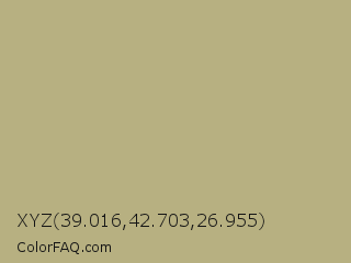 XYZ 39.016,42.703,26.955 Color is a light yellow color and the nearest color is Sand Ecru #c2b280. Hex code #b7b081 and RGB value is rgb(183,176,129). In RGB color space, this color is composed of 72% red, 69% green, 51% blue, In CMYK color space, this color is composed of 0% cyan, 4% magenta, 30% yellow , 28% black , In HSL color space, this color has a hue angle of 52° , 27% saturation and 61% lightness.