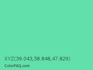 XYZ 39.043,58.848,47.829 Color is a light green color and the nearest color is Medium Aquamarine #66ddaa. Hex code #62e0ab and RGB value is rgb(98,224,171). In RGB color space, this color is composed of 38% red, 88% green, 67% blue, In CMYK color space, this color is composed of 56% cyan, 0% magenta, 24% yellow , 12% black , In HSL color space, this color has a hue angle of 155° , 67% saturation and 63% lightness.