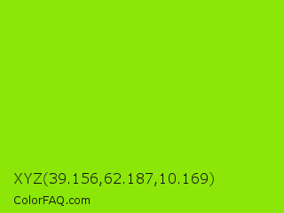 XYZ 39.156,62.187,10.169 Color is a normal green color and the nearest color is Alien Armpit #84de02. Hex code #8ce608 and RGB value is rgb(140,230,8). In RGB color space, this color is composed of 55% red, 90% green, 3% blue, In CMYK color space, this color is composed of 39% cyan, 0% magenta, 97% yellow , 10% black , In HSL color space, this color has a hue angle of 84° , 93% saturation and 47% lightness.