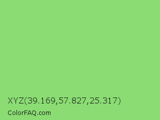 XYZ 39.169,57.827,25.317 Color is a light green color and the nearest color is Pastel Green #77dd77. Hex code #8adc73 and RGB value is rgb(138,220,115). In RGB color space, this color is composed of 54% red, 86% green, 45% blue, In CMYK color space, this color is composed of 37% cyan, 0% magenta, 48% yellow , 14% black , In HSL color space, this color has a hue angle of 107° , 60% saturation and 66% lightness.