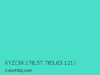 XYZ 39.178,57.783,63.121 Color is a normal cyan color and the nearest color is Turquoise #40e0d0. Hex code #49dec7 and RGB value is rgb(73,222,199). In RGB color space, this color is composed of 29% red, 87% green, 78% blue, In CMYK color space, this color is composed of 67% cyan, 0% magenta, 10% yellow , 13% black , In HSL color space, this color has a hue angle of 171° , 69% saturation and 58% lightness.
