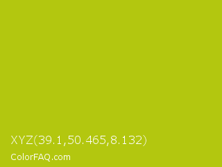 XYZ 39.1,50.465,8.132 Color is a normal yellow color and the nearest color is La Rioja #b3c110. Hex code #b3c70f and RGB value is rgb(179,199,15). In RGB color space, this color is composed of 70% red, 78% green, 6% blue, In CMYK color space, this color is composed of 10% cyan, 0% magenta, 92% yellow , 22% black , In HSL color space, this color has a hue angle of 67° , 86% saturation and 42% lightness.