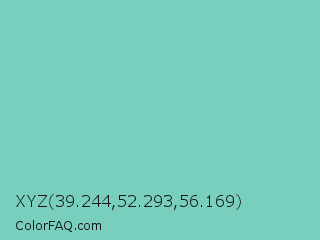 XYZ 39.244,52.293,56.169 Color is a light cyan color and the nearest color is Downy #6fd0c5. Hex code #78cfbd and RGB value is rgb(120,207,189). In RGB color space, this color is composed of 47% red, 81% green, 74% blue, In CMYK color space, this color is composed of 42% cyan, 0% magenta, 9% yellow , 19% black , In HSL color space, this color has a hue angle of 168° , 48% saturation and 64% lightness.