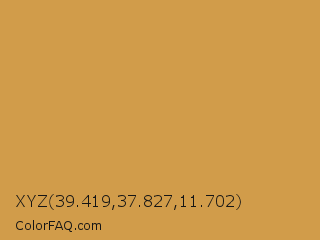 XYZ 39.419,37.827,11.702 Color is a normal orange color and the nearest color is Tussock #c5994b. Hex code #d19c4a and RGB value is rgb(209,156,74). In RGB color space, this color is composed of 82% red, 61% green, 29% blue, In CMYK color space, this color is composed of 0% cyan, 25% magenta, 65% yellow , 18% black , In HSL color space, this color has a hue angle of 36° , 59% saturation and 55% lightness.