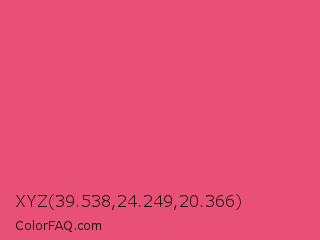XYZ 39.538,24.249,20.366 Color is a light rose color and the nearest color is Dark Pink #e75480. Hex code #e85078 and RGB value is rgb(232,80,120). In RGB color space, this color is composed of 91% red, 31% green, 47% blue, In CMYK color space, this color is composed of 0% cyan, 66% magenta, 48% yellow , 9% black , In HSL color space, this color has a hue angle of 344° , 77% saturation and 61% lightness.