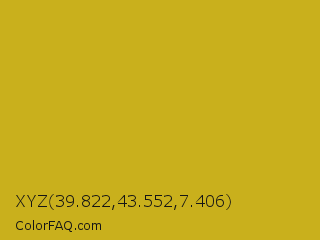 XYZ 39.822,43.552,7.406 Color is a normal yellow color and the nearest color is Hokey Pokey #c8a528. Hex code #c9b01c and RGB value is rgb(201,176,28). In RGB color space, this color is composed of 79% red, 69% green, 11% blue, In CMYK color space, this color is composed of 0% cyan, 12% magenta, 86% yellow , 21% black , In HSL color space, this color has a hue angle of 51° , 76% saturation and 45% lightness.