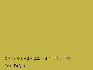 XYZ 39.846,44.947,12.206 Color is a normal yellow color and the nearest color is Turmeric #cabb48. Hex code #c2b545 and RGB value is rgb(194,181,69). In RGB color space, this color is composed of 76% red, 71% green, 27% blue, In CMYK color space, this color is composed of 0% cyan, 7% magenta, 64% yellow , 24% black , In HSL color space, this color has a hue angle of 54° , 51% saturation and 52% lightness.