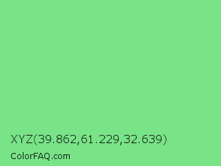XYZ 39.862,61.229,32.639 Color is a light green color and the nearest color is Pastel Green #77dd77. Hex code #78e487 and RGB value is rgb(120,228,135). In RGB color space, this color is composed of 47% red, 89% green, 53% blue, In CMYK color space, this color is composed of 47% cyan, 0% magenta, 41% yellow , 11% black , In HSL color space, this color has a hue angle of 128° , 67% saturation and 68% lightness.