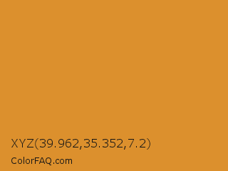 XYZ 39.962,35.352,7.2 Color is a normal orange color and the nearest color is Tigers Eye #e08d3c. Hex code #dc902d and RGB value is rgb(220,144,45). In RGB color space, this color is composed of 86% red, 56% green, 18% blue, In CMYK color space, this color is composed of 0% cyan, 35% magenta, 80% yellow , 14% black , In HSL color space, this color has a hue angle of 34° , 71% saturation and 52% lightness.
