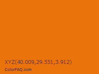 XYZ 40.009,29.551,3.912 Color is a normal orange color and the nearest color is Christine #e7730a. Hex code #ea720b and RGB value is rgb(234,114,11). In RGB color space, this color is composed of 92% red, 45% green, 4% blue, In CMYK color space, this color is composed of 0% cyan, 51% magenta, 95% yellow , 8% black , In HSL color space, this color has a hue angle of 28° , 91% saturation and 48% lightness.