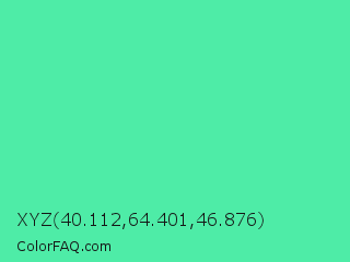 XYZ 40.112,64.401,46.876 Color is a light green color and the nearest color is Eucalyptus #44d7a8. Hex code #4eeca7 and RGB value is rgb(78,236,167). In RGB color space, this color is composed of 31% red, 93% green, 65% blue, In CMYK color space, this color is composed of 67% cyan, 0% magenta, 29% yellow , 7% black , In HSL color space, this color has a hue angle of 154° , 81% saturation and 62% lightness.