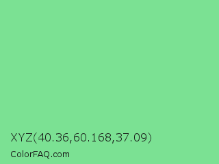 XYZ 40.36,60.168,37.09 Color is a light green color and the nearest color is Light Green #90ee90. Hex code #7be193 and RGB value is rgb(123,225,147). In RGB color space, this color is composed of 48% red, 88% green, 58% blue, In CMYK color space, this color is composed of 45% cyan, 0% magenta, 35% yellow , 12% black , In HSL color space, this color has a hue angle of 134° , 63% saturation and 68% lightness.