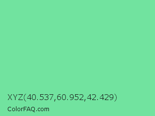 XYZ 40.537,60.952,42.429 Color is a light green color and the nearest color is Medium Aquamarine #66ddaa. Hex code #71e39f and RGB value is rgb(113,227,159). In RGB color space, this color is composed of 44% red, 89% green, 62% blue, In CMYK color space, this color is composed of 50% cyan, 0% magenta, 30% yellow , 11% black , In HSL color space, this color has a hue angle of 144° , 67% saturation and 67% lightness.