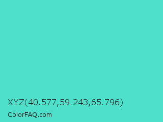 XYZ 40.577,59.243,65.796 Color is a normal cyan color and the nearest color is Turquoise #40e0d0. Hex code #4ee0cb and RGB value is rgb(78,224,203). In RGB color space, this color is composed of 31% red, 88% green, 80% blue, In CMYK color space, this color is composed of 65% cyan, 0% magenta, 9% yellow , 12% black , In HSL color space, this color has a hue angle of 171° , 70% saturation and 59% lightness.