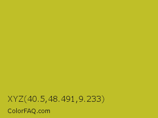 XYZ 40.5,48.491,9.233 Color is a normal yellow color and the nearest color is Key Lime Pie #bfc921. Hex code #bfbf28 and RGB value is rgb(191,191,40). In RGB color space, this color is composed of 75% red, 75% green, 16% blue, In CMYK color space, this color is composed of 0% cyan, 0% magenta, 79% yellow , 25% black , In HSL color space, this color has a hue angle of 60° , 65% saturation and 45% lightness.