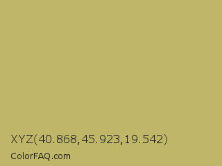 XYZ 40.868,45.923,19.542 Color is a normal yellow color and the nearest color is Dark Khaki #bdb76b. Hex code #bfb767 and RGB value is rgb(191,183,103). In RGB color space, this color is composed of 75% red, 72% green, 40% blue, In CMYK color space, this color is composed of 0% cyan, 4% magenta, 46% yellow , 25% black , In HSL color space, this color has a hue angle of 55° , 41% saturation and 58% lightness.