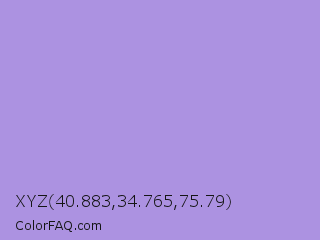 XYZ 40.883,34.765,75.79 Color is a light indigo color and the nearest color is Dull Lavender #a899e6. Hex code #ac92e1 and RGB value is rgb(172,146,225). In RGB color space, this color is composed of 67% red, 57% green, 88% blue, In CMYK color space, this color is composed of 24% cyan, 35% magenta, 0% yellow , 12% black , In HSL color space, this color has a hue angle of 260° , 57% saturation and 73% lightness.