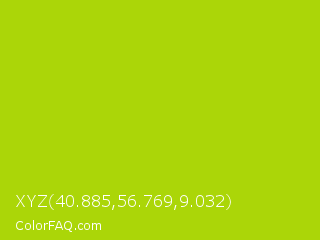 XYZ 40.885,56.769,9.032 Color is a normal lime color and the nearest color is Vivid Lime Green #a6d608. Hex code #abd608 and RGB value is rgb(171,214,8). In RGB color space, this color is composed of 67% red, 84% green, 3% blue, In CMYK color space, this color is composed of 20% cyan, 0% magenta, 96% yellow , 16% black , In HSL color space, this color has a hue angle of 73° , 93% saturation and 44% lightness.