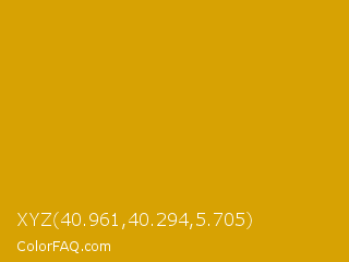 XYZ 40.961,40.294,5.705 Color is a normal orange color and the nearest color is Vivid Amber #cc9900. Hex code #d7a203 and RGB value is rgb(215,162,3). In RGB color space, this color is composed of 84% red, 64% green, 1% blue, In CMYK color space, this color is composed of 0% cyan, 25% magenta, 99% yellow , 16% black , In HSL color space, this color has a hue angle of 45° , 97% saturation and 43% lightness.