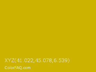 XYZ 41.022,45.078,6.539 Color is a normal yellow color and the nearest color is Galliano #dcb20c. Hex code #ccb300 and RGB value is rgb(204,179,0). In RGB color space, this color is composed of 80% red, 70% green, 0% blue, In CMYK color space, this color is composed of 0% cyan, 12% magenta, 100% yellow , 20% black , In HSL color space, this color has a hue angle of 53° , 100% saturation and 40% lightness.