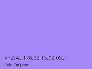 XYZ 41.178,32.15,92.031 Color is a light indigo color and the nearest color is Dull Lavender #a899e6. Hex code #a687f7 and RGB value is rgb(166,135,247). In RGB color space, this color is composed of 65% red, 53% green, 97% blue, In CMYK color space, this color is composed of 33% cyan, 45% magenta, 0% yellow , 3% black , In HSL color space, this color has a hue angle of 257° , 88% saturation and 75% lightness.