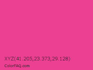 XYZ 41.205,23.373,29.128 Color is a normal rose color and the nearest color is Cerise Pink #ec3b83. Hex code #eb4091 and RGB value is rgb(235,64,145). In RGB color space, this color is composed of 92% red, 25% green, 57% blue, In CMYK color space, this color is composed of 0% cyan, 73% magenta, 38% yellow , 8% black , In HSL color space, this color has a hue angle of 332° , 81% saturation and 59% lightness.