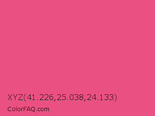 XYZ 41.226,25.038,24.133 Color is a light rose color and the nearest color is Dark Pink #e75480. Hex code #eb5083 and RGB value is rgb(235,80,131). In RGB color space, this color is composed of 92% red, 31% green, 51% blue, In CMYK color space, this color is composed of 0% cyan, 66% magenta, 44% yellow , 8% black , In HSL color space, this color has a hue angle of 340° , 79% saturation and 62% lightness.