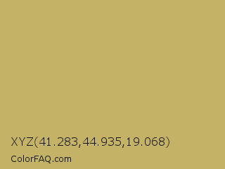 XYZ 41.283,44.935,19.068 Color is a normal yellow color and the nearest color is Laser #c8b568. Hex code #c4b366 and RGB value is rgb(196,179,102). In RGB color space, this color is composed of 77% red, 70% green, 40% blue, In CMYK color space, this color is composed of 0% cyan, 9% magenta, 48% yellow , 23% black , In HSL color space, this color has a hue angle of 49° , 44% saturation and 58% lightness.