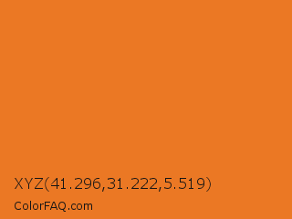 XYZ 41.296,31.222,5.519 Color is a normal orange color and the nearest color is Vivid Tangelo #f07427. Hex code #eb7824 and RGB value is rgb(235,120,36). In RGB color space, this color is composed of 92% red, 47% green, 14% blue, In CMYK color space, this color is composed of 0% cyan, 49% magenta, 85% yellow , 8% black , In HSL color space, this color has a hue angle of 25° , 83% saturation and 53% lightness.